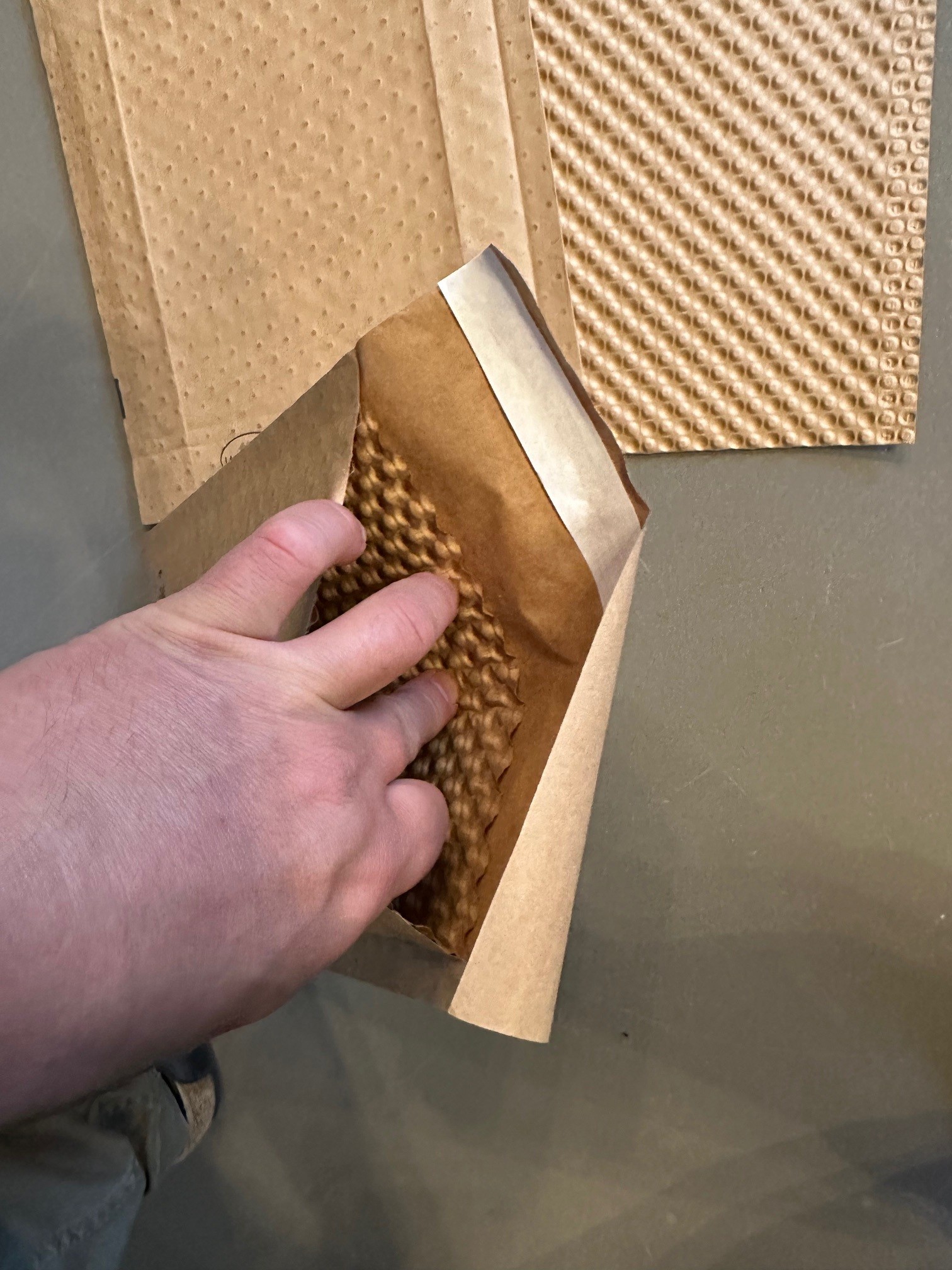 Versandtasche aus Papier mit innen liegender Polsterung durch Papiernoppen